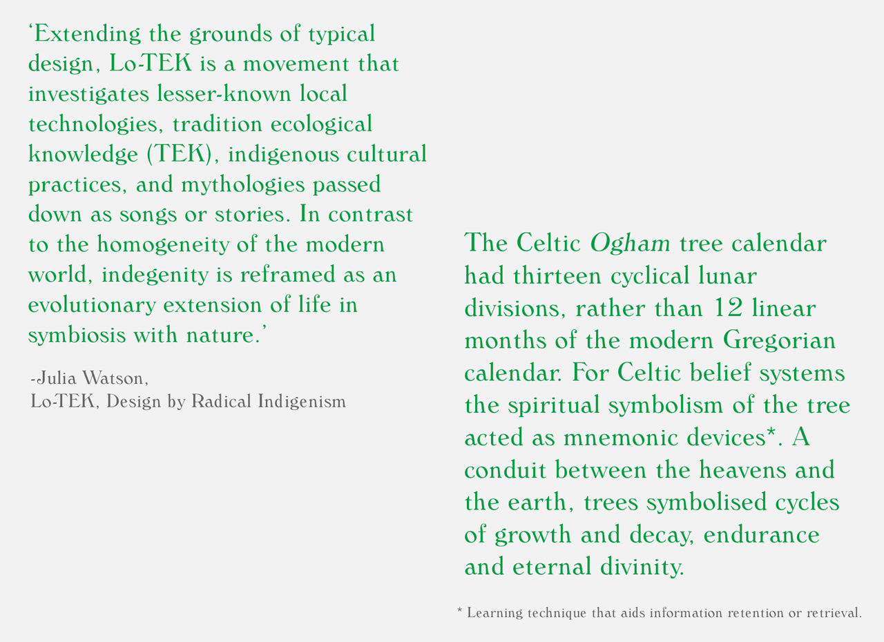 Celt TEK c / A brief speculation upon resurfacing the traditional ecological knowledge (TEK) of Celtic Ogham calendars into modern 'tech' - as an act of temporal de-evolution towards the origins of technology. ![]() ![]() ![]() ![]() ![]() ![]() ![]()