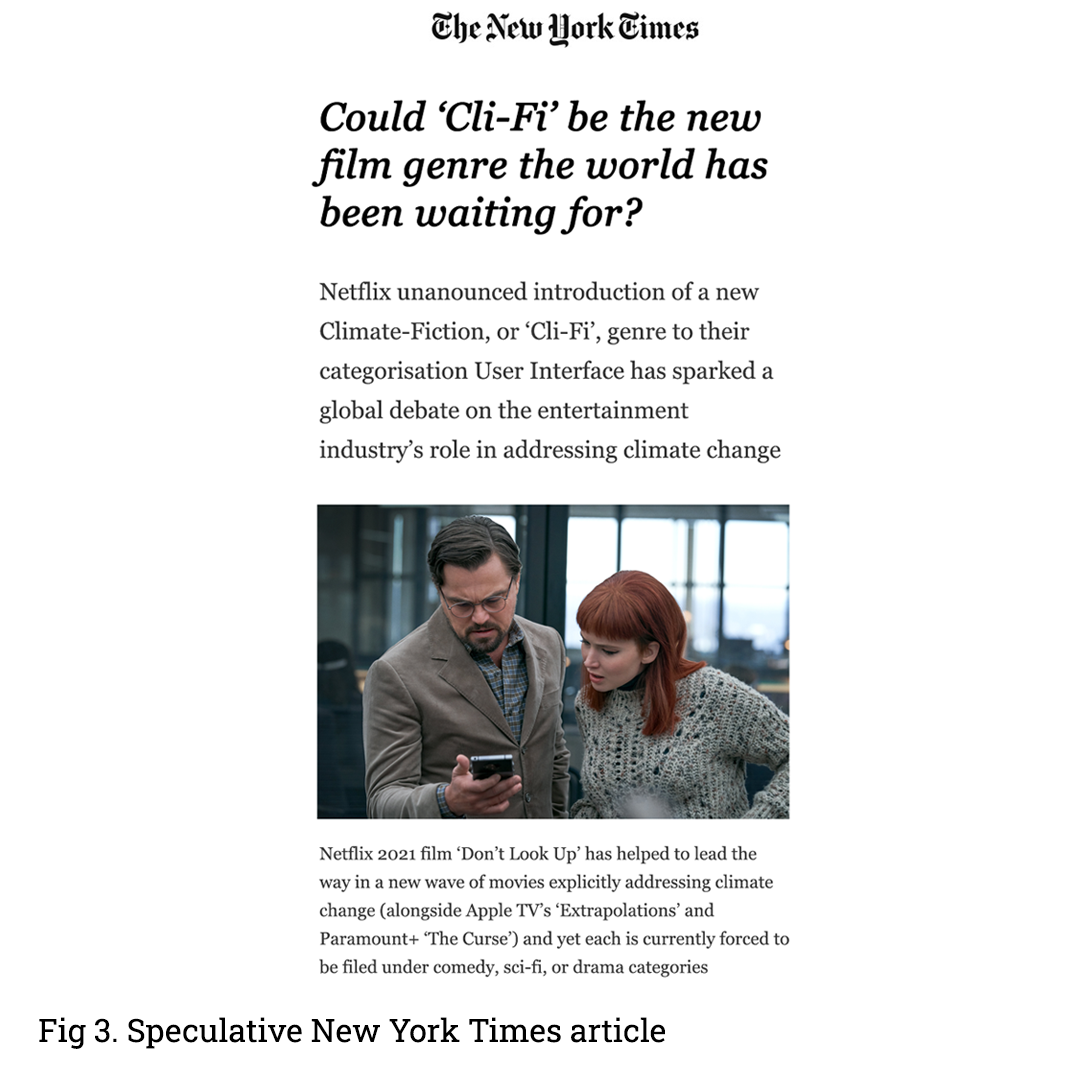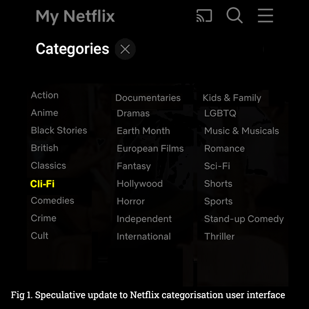 Cli-Fi c / Might the creation of a new Climate-Fiction, or Cli-Fi, genre help to reframe mainstream interpretations and imaginations of climate crisis in a similar way that Sci-Fi has helped influence mainstream interpretations and imaginations of science? "See, it turns out there hasn't been a new genre since Fellini invented the mockumentary." - Donald Kaufman, Adaptation, 2002 Creative Commons Attribution: You are invited to publish, reference or iterate this c licensed material for non-commercial purposes as long as you follow the license conditions. Below is a suggestive copy and paste attribution for this work. ted@ted-hunt.com | @_ted_hunt | |