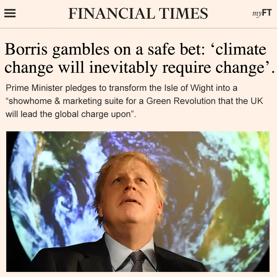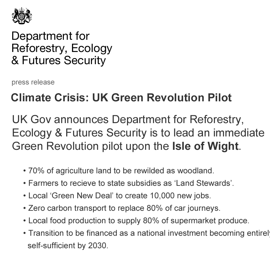 Isle of Trial c / In April 2020 the UK Gov designated the Isle of Wight as the pilot location for the NHS coronavirus contact-tracing app. What if the Isle of Wight's unique contained geography and significant size was next used as a pilot for a holistic transition to a sustainable society? A climate speculation told in a flag, a question, a press release, and a series of news imagined headlines exploring social/political/personal/global implications. ![]()