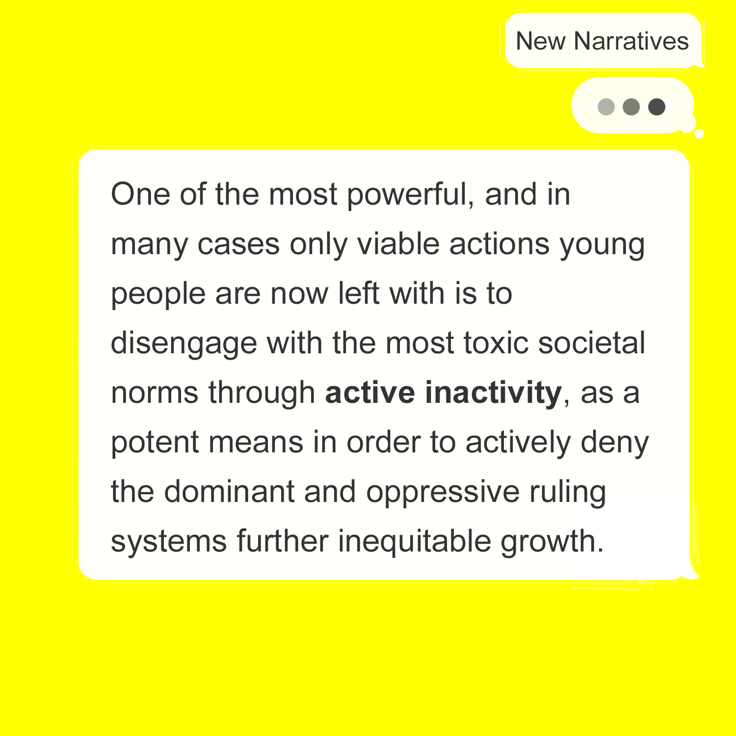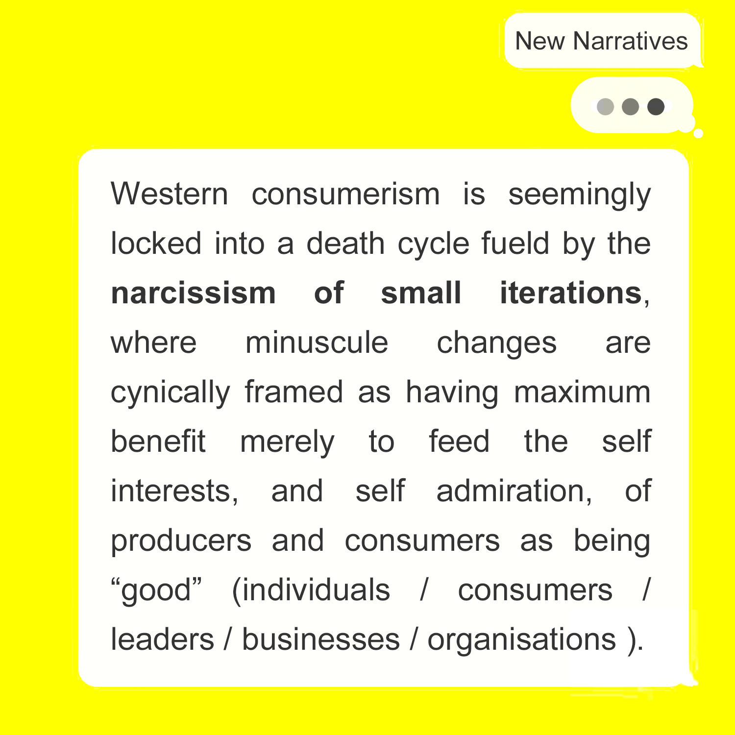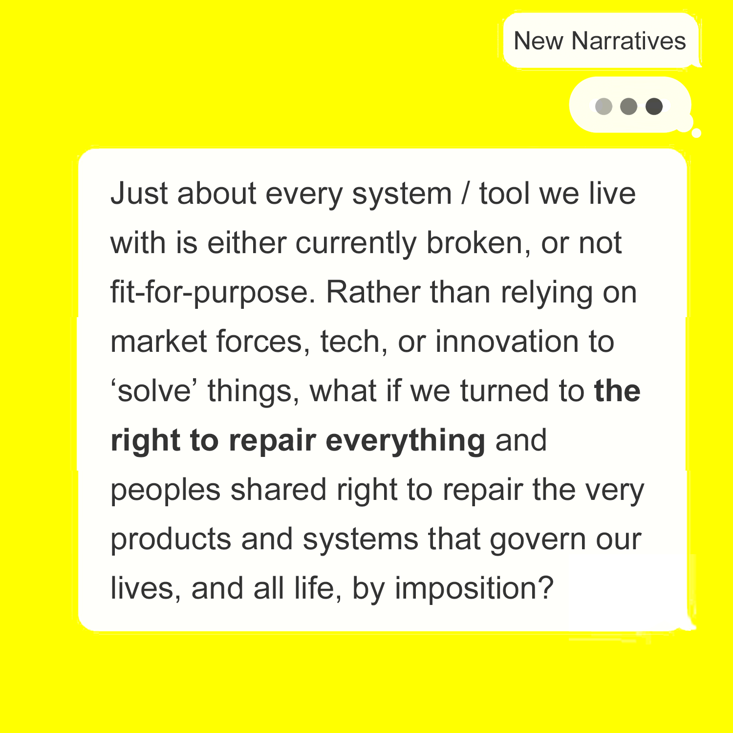 New Narratives c / How do we adapt to an age when the old stories we live by are collapsing around us, and no new stories have emerged to replace them? We need to design meaningful, and sustainable, New Narratives. #FridaysforFuture An ongoing library of New Narratives: