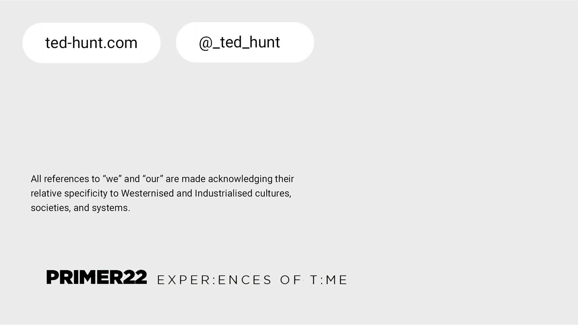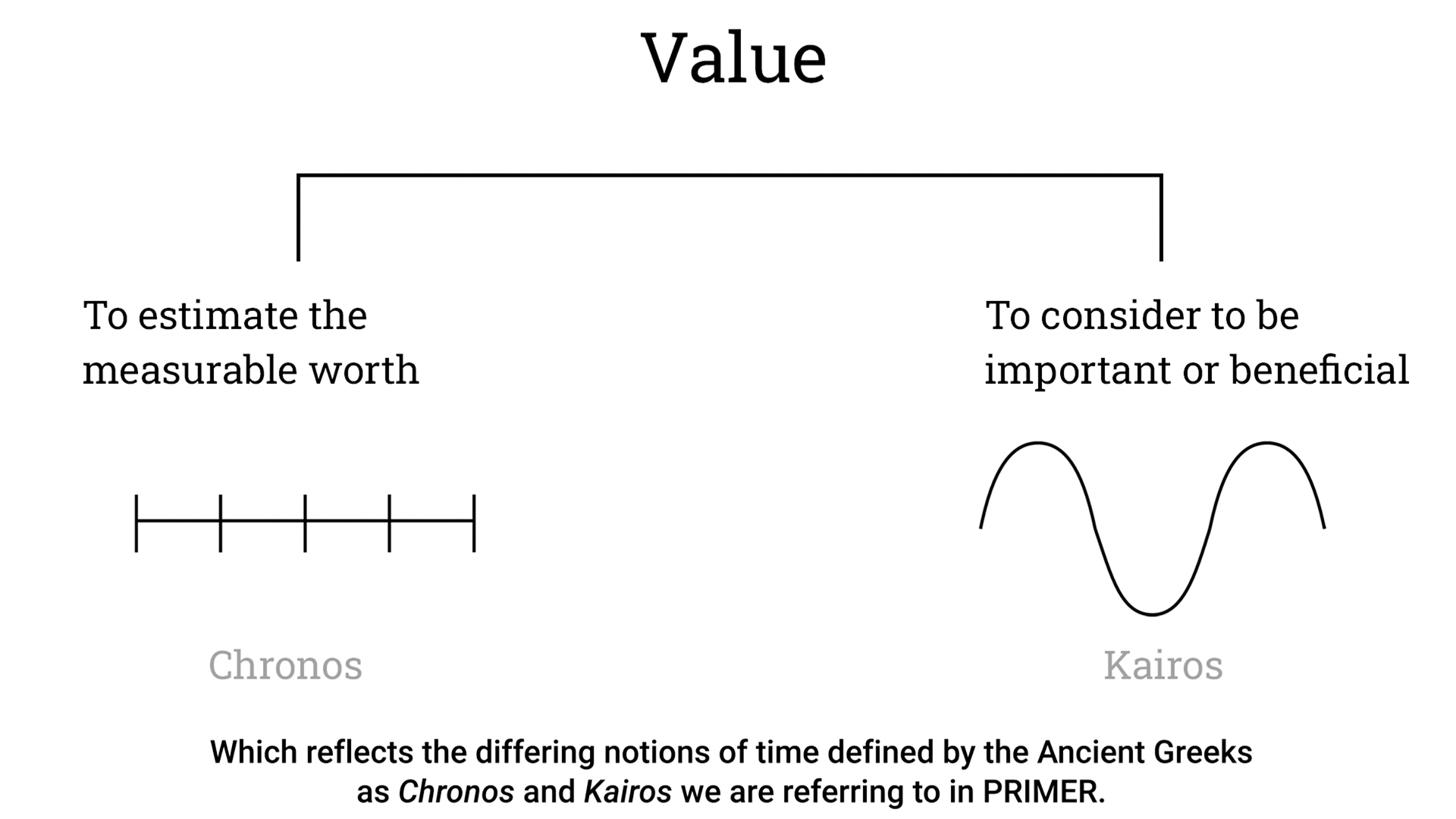 PRIMER22 Opening Keynotes Is it time we revalued time? "The term 'value' can have two very different interpretations; That of defining an estimated measurable worth as a quantitative value. Its metric value. Or that of considering something to be important or beneficial as a qualitative value. Its moral value. " Commissioned by Design Futures for #PRIMER22 Presentation script. Selected frames from presentation: