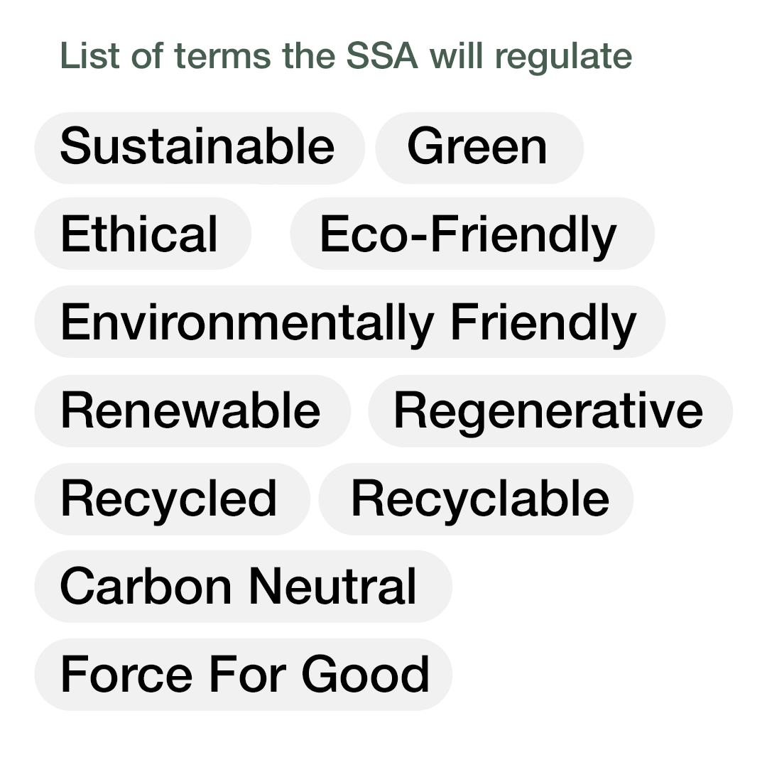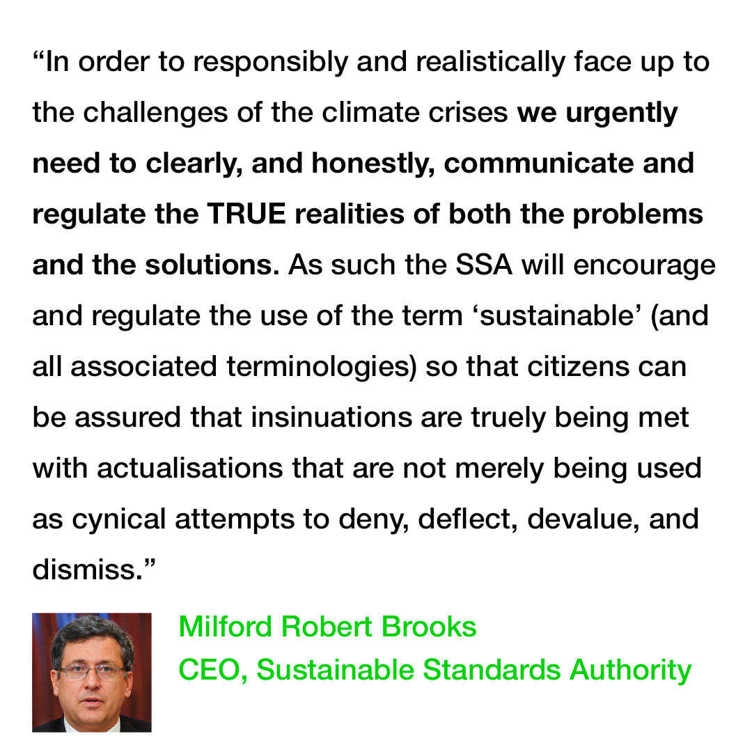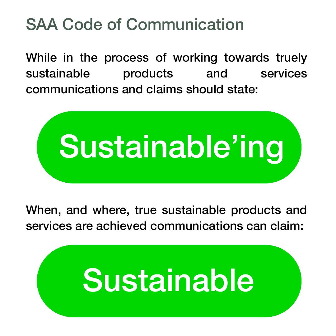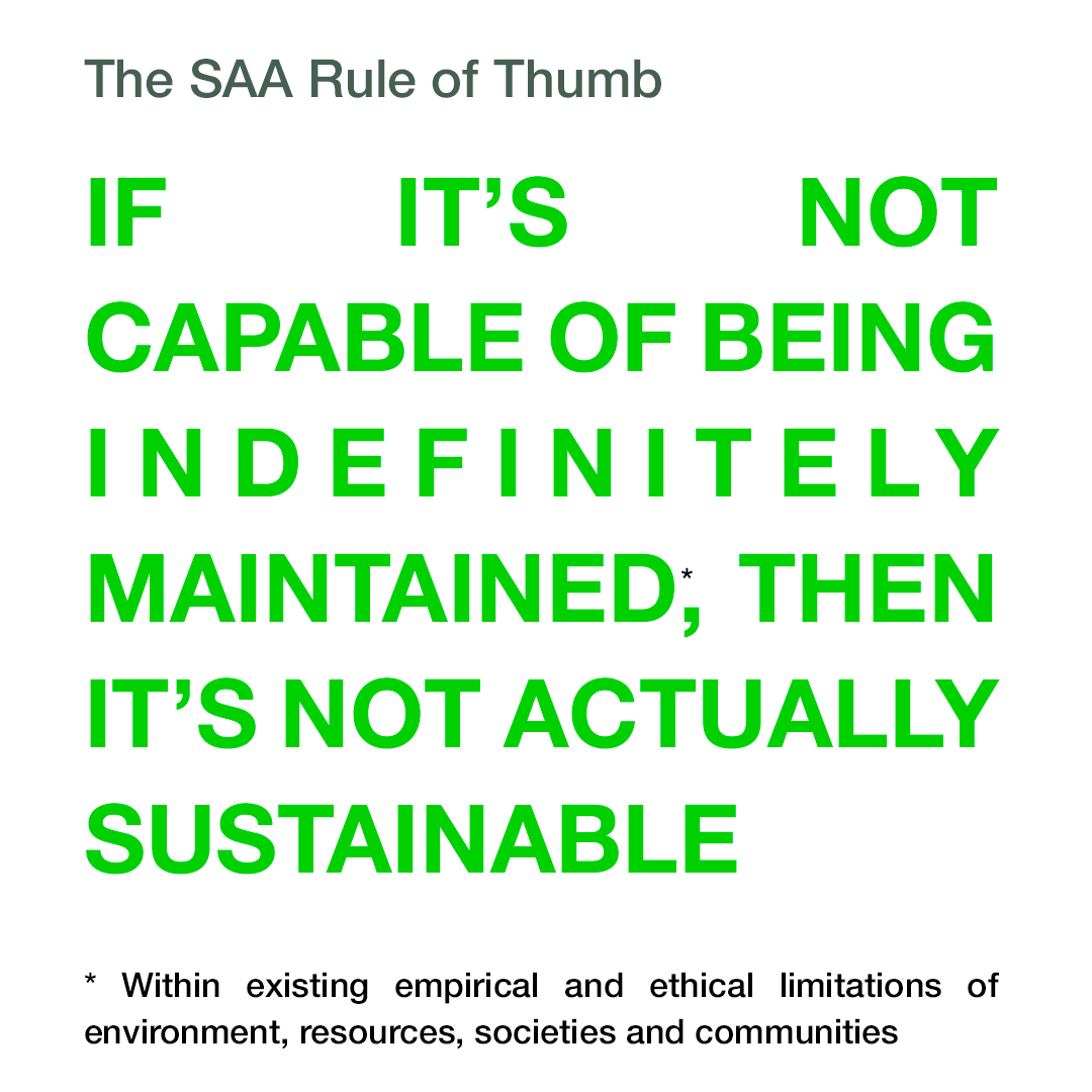 Sustainable Standards Authority c / A speculative regulatory body equivalent to the ASA (Advertising Standards Authority) that might seek to protect the interests of citizen from the increasingly dubious and cynical interpretations of the term 'sustainable'. Ultimately leading to the decoupling of sustainable and sustainability as claims, to an appreciation of sustainable'ing as an action and endeavour.