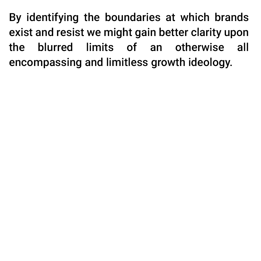 What Does This Mean For Brands? c / By identifying the boundaries at which brands exist and resist we might gain better clarity upon the blurred limits of an otherwise all encompassing and limitless growth ideology. Creative Commons Attribution: You are invited to publish, reference or iterate this c licensed material for non-commercial purposes as long as you follow the license conditions. Below is a suggestive copy and paste attribution for this work. ted@ted-hunt.com | @_ted_hunt | |